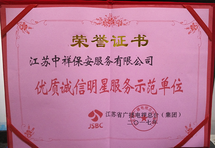 >> 查看詳情江蘇中祥保安是一家紀(jì)律嚴(yán)明,服務(wù)至上的公司,我們在眾多公司中選中中祥,于六月展開合作,合作過程非常愉快,看到中祥的專業(yè)...